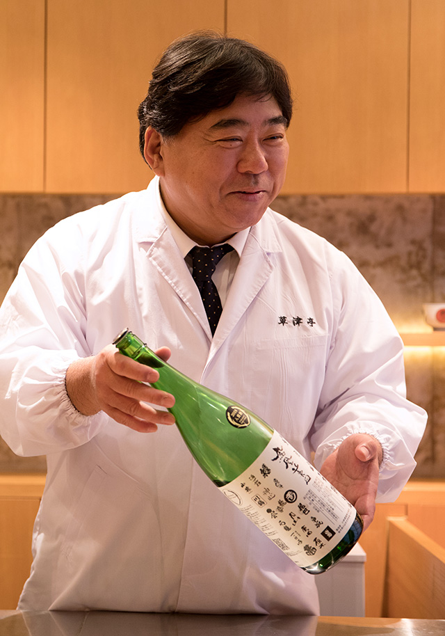 「空気のようにさりげなく、温かい」。これが創業以来変わらない、草津亭のおもてなしの心です。お客様のご様子に気を配り、お料理を出す頃合いを見計らい、お話を伺いながらお好みに合うお酒をおすすめする。店主、料理長をはじめすべての従業員が、お一人お一人に合わせた、きめ細やかで温かいおもてなしを大切にしております。